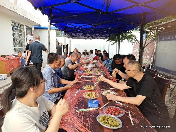 游戲結(jié)束后,溫馨的聚餐時刻悄然來臨。縱使烈日炎炎,暑氣逼人,卻絲毫未減大家的熱情。一幅自力更生、愉快勞作的大生產(chǎn)繁忙且歡樂的畫面在眼前呈現(xiàn)。有的精心燉制羊肉,有的熟練地包餃子,有的專注地穿肉串,有的細心地切水果,大家分工明確,緊密配合。琳瑯滿目的美食在辛勤勞作的孕育下豐盛登場。大家圍坐一團,一邊品嘗著自己的勞動成果,一邊愉快地交流分享,現(xiàn)場氛圍輕松又愉悅。