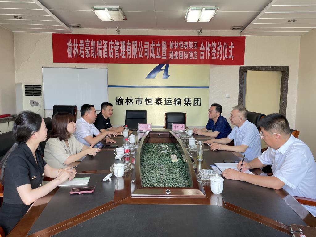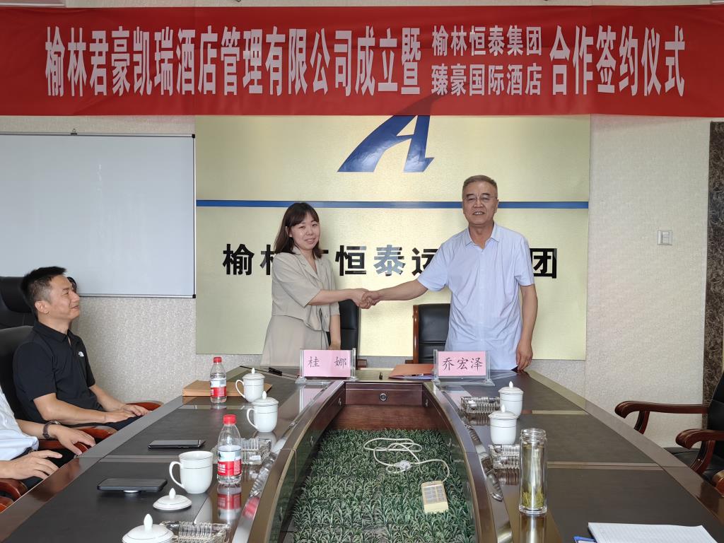 2023年7月11日上午,榆林君豪凱瑞酒店管理有限公司成立暨榆林市恒泰集團(tuán)與西安臻豪國(guó)際酒店有限公司合作簽約儀式在集團(tuán)公司總部大樓8樓會(huì)議室舉行。恒泰集團(tuán)董事長(zhǎng)喬宏澤、總經(jīng)理萬(wàn)恒山、總經(jīng)理助理葉希云,立豪集團(tuán)董事長(zhǎng)桂志明、辦公室主任袁方,西安臻豪國(guó)際酒店有限公司總經(jīng)理桂娜,江蘇晗月酒店管理有限公司開(kāi)發(fā)總監(jiān)孟祥輝等人出席了簽約儀式,共同見(jiàn)證這一時(shí)刻。