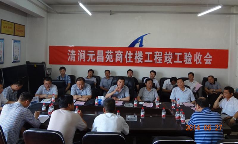 2014年6月27日的清澗風(fēng)和日麗、陽光明媚。上午9點半至11點半,由集團公司投資,元昌房地產(chǎn)開發(fā)公司實施的元昌苑商住樓工程驗收工作順利完成。參加驗收會的集團公司領(lǐng)導(dǎo)有總經(jīng)理李懷亮、監(jiān)事會主席鄭福榮、黨委副書記張群、總經(jīng)理助理崔連文,集團公司副總經(jīng)理王銀主持驗收會議。清澗縣各有關(guān)部門、參建各單位、集團總部相關(guān)部門負責(zé)人參加工程驗收。