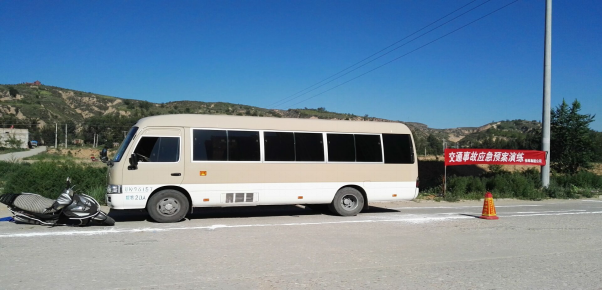 本次演練模擬情景在神木縣城關(guān)鎮(zhèn)石窖院村,一輛摩托車在駛出岔路口時(shí),與城市道路上一輛疾馳而過的客運(yùn)車相撞,導(dǎo)致摩托車司機(jī)受輕傷、客車輕微受損及摩托車嚴(yán)重受損的交通事故的發(fā)生。事故發(fā)生后,集團(tuán)公司職能部門、汽車站和客運(yùn)公司及時(shí)啟動(dòng)車輛交通事故應(yīng)急預(yù)案,出動(dòng)了綜合協(xié)調(diào)、疏散警戒、后勤保障和安撫善后4個(gè)救援組,按照演練方案確定的處置程序和措施,對(duì)突發(fā)交通事故中的報(bào)案、傷員搶救、事故現(xiàn)場(chǎng)處理、事故調(diào)查等多個(gè)環(huán)節(jié)進(jìn)行了演練,重點(diǎn)檢驗(yàn)了駕駛員在事故發(fā)生時(shí)的應(yīng)急處置、報(bào)警方式、職能部門及基層單位的接警處置方式、協(xié)調(diào)配合能力、啟動(dòng)應(yīng)急措施的反應(yīng)能力和事故現(xiàn)場(chǎng)正確處置的應(yīng)急能力。
