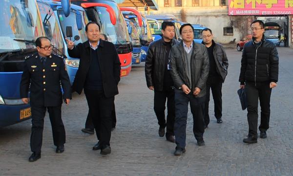 2017年1月12日上午8時(shí)許,省運(yùn)管局副局長(zhǎng)張普照一行在市運(yùn)管處等部門相關(guān)領(lǐng)導(dǎo)的陪同下蒞臨我公司進(jìn)行春運(yùn)安全檢查工作,集團(tuán)公司總經(jīng)理王銀及相關(guān)部門、單位負(fù)責(zé)人全程陪同檢查。
