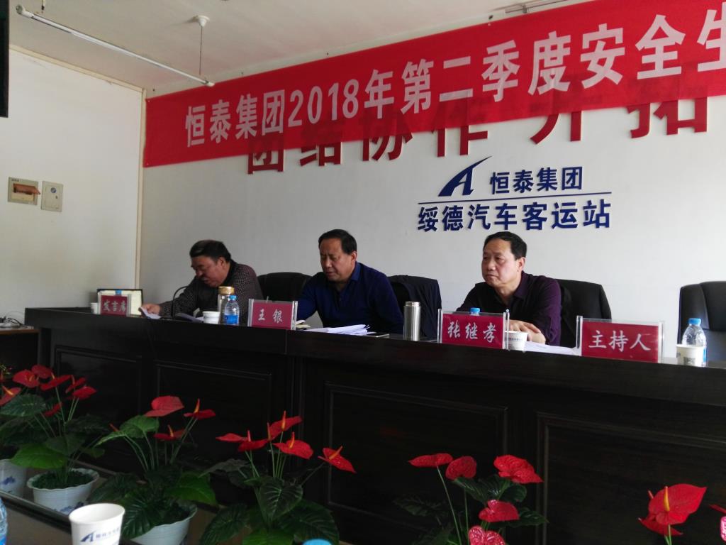 在2017年度安全工作取得較好成績以來,2018年第一季度集團(tuán)公司安全形勢持續(xù)平穩(wěn),安全生產(chǎn)工作繼續(xù)保持了良好的態(tài)勢。為繼續(xù)做好安全生產(chǎn)工作,嚴(yán)防各類事故發(fā)生,4月19日下午,集團(tuán)公司安全生產(chǎn)委員會在綏德汽車站會議室召開了2018 年第二季度安全生產(chǎn)工作會議。集團(tuán)公司王銀總經(jīng)理、張繼孝副總經(jīng)理、安技部負(fù)責(zé)人及相關(guān)人員、各客運(yùn)公司經(jīng)理、綏德汽車站站長及站長助理、客三公司全體人員、部分客運(yùn)公司動態(tài)監(jiān)控人員共35人參加了會議,會議由副總經(jīng)理張繼孝主持。