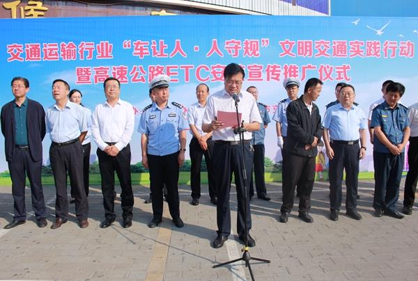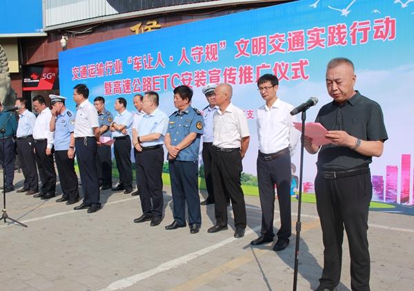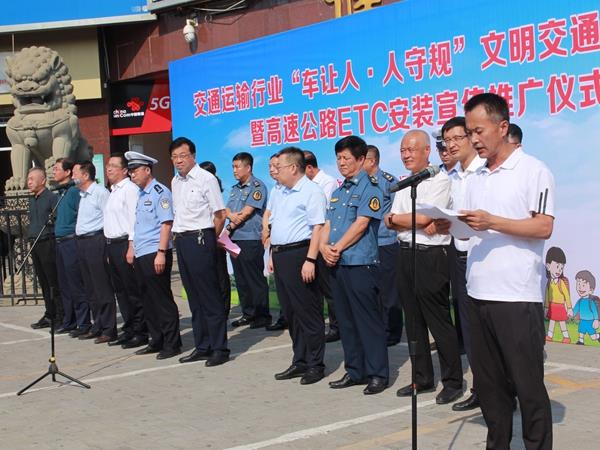 為深入開展“車讓人、人守規(guī)”文明交通活動,提升和展示榆林文明交通新形象,由市創(chuàng)文辦、市交通局和市交警支隊等部門聯(lián)合舉辦的“車讓人、人守規(guī)”文明交通實(shí)踐行動暨高速公路ETC安裝宣傳推廣儀式于2019年9月3日上午9時在榆林汽車站站前廣場召開。市交通、公路、運(yùn)管、城客、公交和南北汽車站有關(guān)工作人員及從業(yè)人員代表共計200余人參加了宣傳推廣儀式。儀式由市交通運(yùn)輸局局長安欣主持,集團(tuán)公司總經(jīng)理喬宏澤出席了儀式。